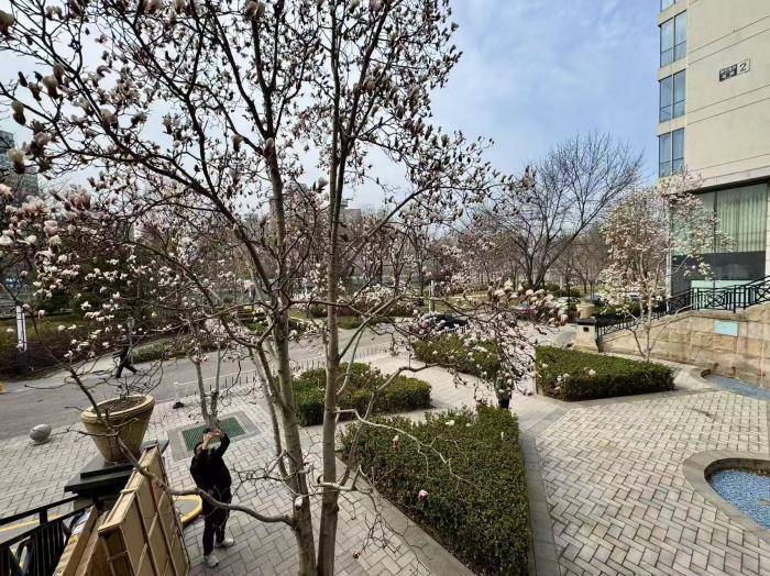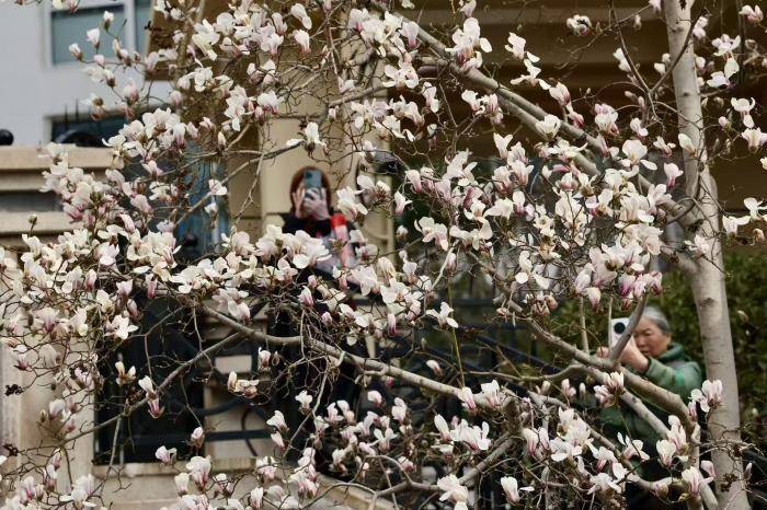 有摄影爱好者表示,这里的玉兰树临水而立,构图干净,是春日拍花的绝佳点位。